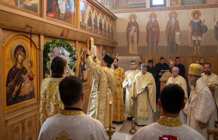 Mert a Jelenések könyvében Jeruzsálem a mennyből alászálló Isten városa; az a tündöklő, új város, amelyet köszöntünk minden liturgiánkban, és húsvét óta figyelmünk középpontjába kerül. Ennek az új Jeruzsálemnek, a mennyből alászálló Jeruzsálemnek legyenek oszlopai a Szent Atanáz-főiskola tanárai és a növendékek, akik ilyen oszlopfeladatok betöltésére készülnek – hangsúlyozta homíliájában Orosz Atanáz miskolci megyéspüspök.