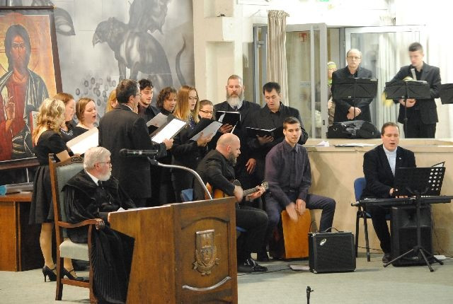 Ezután a miskolci Hassler Énekegyüttes Sándor Zoltán vezetésével előadta azt a gitáros éneket, amelyet szintén a karibi keresztények küldtek az imahétre. A közös Hitvallás, majd a Miatyánk elimádkozása után a négy püspök áldásával zárult az imahét istentisztelete a Miskolci Egyetemen.