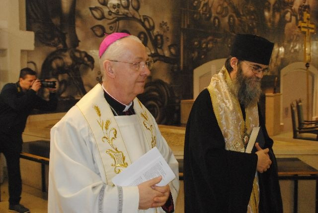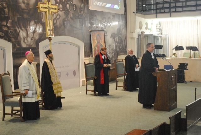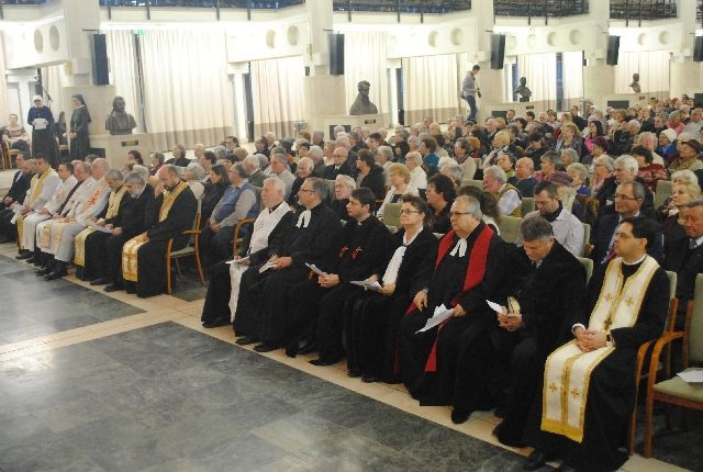 Ternyák Csaba egri érsek Mt 2,13–15 alapján elmélkedett. Krisztus hűséges követőiként mindannyian nyitottak vagyunk az ő szándékának megértésére – kezdte beszédét. – Mégis, vannak közöttünk, itt az aulában is olyan testvérek, akik sajátos életkörülményeik és élethelyzetük miatt valószínűleg fokozottabban érzékenyek az ökumené kérdései iránt, mint általában a keresztények. Azokra a házaspárokra és azokra a családokra gondolok, amelyek otthonaikban napról napra gyakorolják a másik felekezet tiszteletét, megbecsülését és szeretetét, hiszen sok olyan család van, amelyikben a férj és a feleség, az egyik gyermek, a másik gyermek, a nagypapa vagy nagymama egy tőlük különböző felekezethez tartozik, egy másik közösségbe jár, egy másik gyülekezethez tartozik. Ha most az kérném, emeljék fel kezüket azok, akiknek családjában van más felekezetű keresztény testvér, azt hiszem, nagyon sok kéz emelkedne magasba. Tegyük meg… Azt hiszem, többen vagyunk, akik felemeltük kezünket, mint azok, akik nem. Ez egy újabb lendületet, egy belső személyes elköteleződést is ad mindannyiunknak ahhoz, hogy Jézusnak az utolsó vacsorán elmondott szavát, vágyát, fohászát, kérését az Atyához mi is komolyan vegyük, és hogy a mindennapok gyakorlataiba is próbáljuk átültetni.
