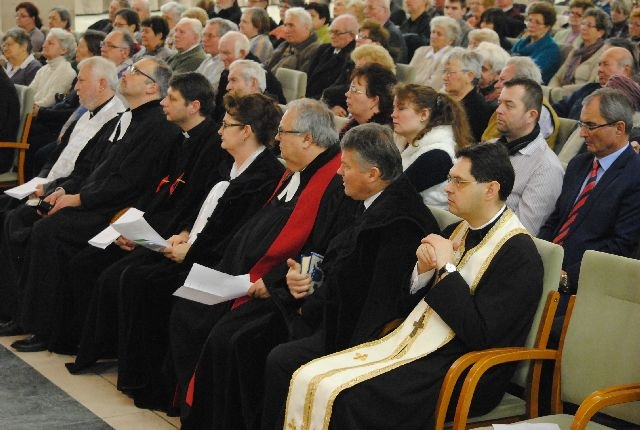 Fabiny Tamás evangélikus püspök a 127. (126.) zsoltár alapján mondta el beszédét. „Hallgassatok az Úr szavára, és szabaddá lesztek!” Az emberi életben sokszor érezzük, hogy haszontalan valami – mondta, kiemelve, hogy ezen a héten nemcsak imádkozhattak közösen, hanem tanulmányozhatták is egymás Szentírásait, hiszen a különböző felekezetek más és más fordításokat használnak. Fabiny Tamás hangsúlyozta, Isten világa a mennyei értékekre fordítja a figyelmet. A haszontalanság, a hiábavalóság gondolata után az emberben megjelenik a remény. Megszületik a gyermek, Isten ajándéka, egy új élet, egy új reménység, hogy ne hasztalan fáradozás legyen, ami az életben van.