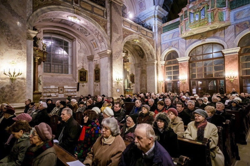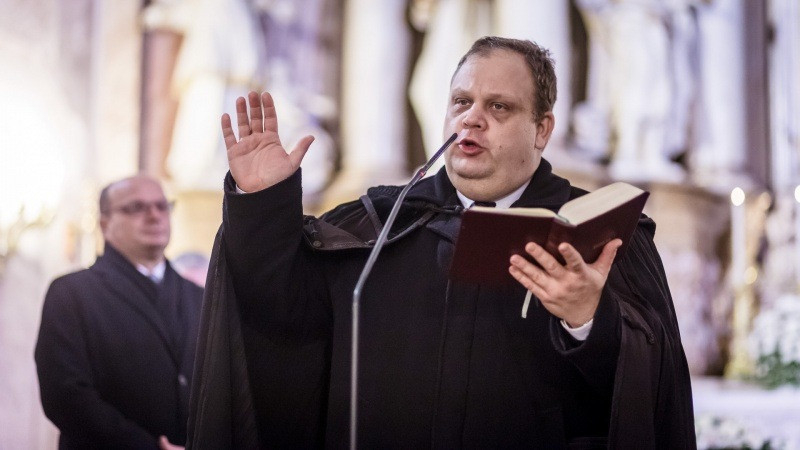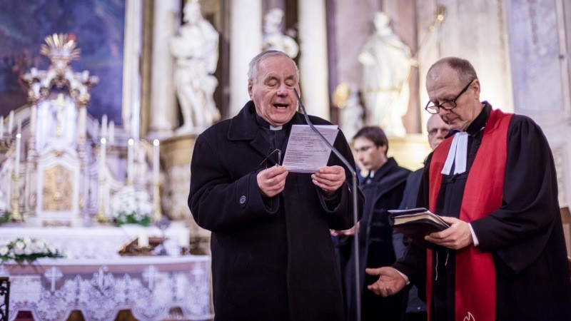A székesfehérvári Szent Imre-templomban tartott ökumenikus istentisztelet elején a hívek és a lelkipásztorok Tóth Tamás plébános vezetésével imádkozták a zsoltárokat, amelyeket Jézus is imádkozott.