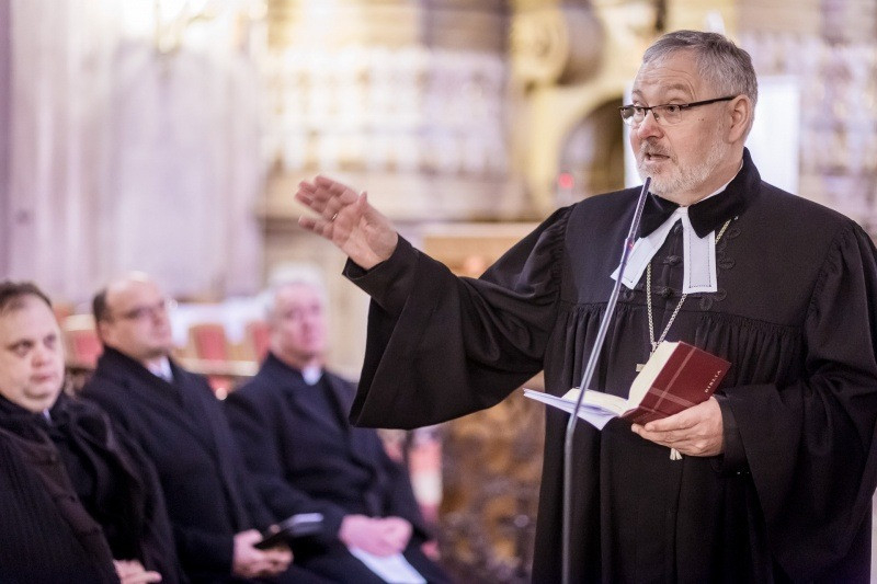 Szemerei János evangélikus püspök az „Áldjon meg téged az Úr…” kezdetű fohásszal áldotta meg a híveket. Berze János református lelkészi elnök egy Pál apostoltól vett idézettel: „A békesség Istene pedig, (…) tegyen készségesekké titeket minden jóra, akaratának teljesítésére; és munkálja bennünk azt, ami kedves őelőtte Jézus Krisztus által.”