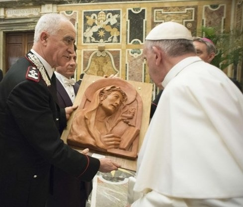 Jézusnak ez a tanítása vezessen benneteket is, akik felelősek vagytok a közrend biztosításáért – kérte Ferenc pápa. Segítsen titeket, hogy minden körülmény között a szolidaritás elősegítői legyetek a leggyengébbek és legvédtelenebbek iránt. Védelmezzétek az élethez való jogot a biztonság iránti elkötelezettség által és az emberek sértetlensége érdekében! Legyetek mindig tudatában annak, hogy Isten minden embert szeret, mert az ő teremtménye, és megérdemli a befogadást és a tiszteletet! – zárta beszédét a pápa.
