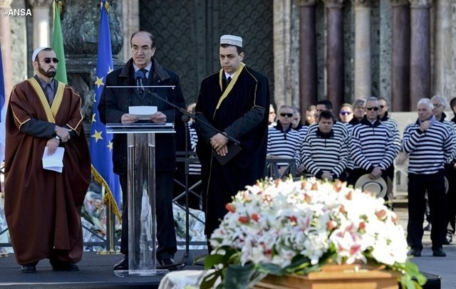 A velencei pátriárka, Francesco Moraglia érsek mutatta be a gyászmisét, amelyen Isten nevében kérte a terroristákat, hogy változzanak meg. Kezdjék a szívüknél a változást, legyen hozzá bátorságuk. Bátorság kell ugyanis ahhoz, hogy beismerjük: mindent elrontottunk. Tudni bocsánatot kérni az emberi méltóságról tanúskodik. A pátriárka hangsúlyozta, hogy Velence mindig is a különböző kultúrák és népek összekötő hídja volt. „Most mindannyiuk szívét egyetlen kérdés tölti el a terroristák felé: miért? Hogyan tehettétek? A ti kultúrátok elborzaszt, de nem félemlít meg. Megijeszt minket, mert emberhez méltatlan, de megerősíti ellenállásunkat kulturális, lelki és emberi téren egyaránt. Soha, de soha nem osztozunk a gyűlöletben, amit a terroristák vallanak, ezt a győzelmet átengedjük nekik. Soha nem tudjátok elérni, hogy gyűlöljük egymást, mert ez a mi kudarcunk lenne” – mondta a pátriárka.