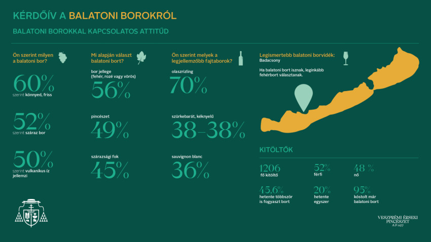 A Veszprémi Érseki Pincészet online kérdőívét több mint ezerkétszázan töltötték ki 2023 júniusában; fele-fele arányban nők és férfiak. 22 százalékuk Budapesten, 20 százalékuk Veszprém, 10 százalékuk Pest megyében él, a többi válaszadó lakhelye más megyében található. A résztvevők egyharmada a 46–55 éves, egynegyede a 36–45 éves korosztályhoz tartozik, 18 százaléka pedig 26–35 éves. A kitöltők közül majdnem mindenki fogyaszt bort, több mint 45 százalékuk hetente többször is, 20 százalék hetente egyszer, 35 százalékuk ennél ritkábban. 95 százalékuk kóstolt már balatoni bort, a Veszprémi Érseki Pincészetet 80 százalékuk ismeri.