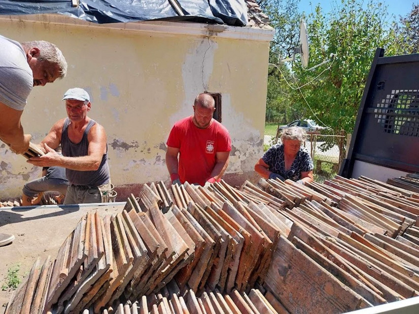 A helyreállítás megkezdéséhez az első héten a Pécsi Egyházmegyei Katolikus Karitász 6000 darab használt cserepet, több száz folyóméternyi tetőlécet, épületfákat, bádogos termékeket szállított magánszemélyek és cégek jóvoltából a helyszínre.