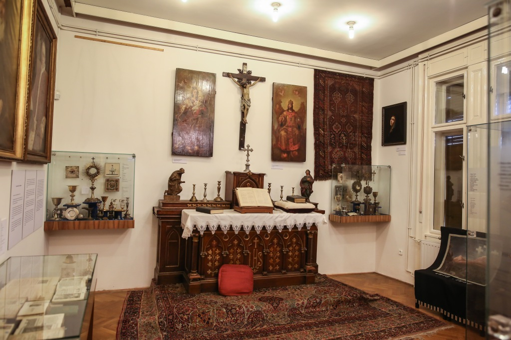 Az örmény vallás történetének főbb eseményeit olajfestmények, másolatok, fényképek és könyvek reprezentálják. Láthatjuk, amint Világosító Szent Gergely megkereszteli Tiridat királyt. Az olajfestmények között ott van Oxendio Virziresco unitus püspök portréja, akinek az erdélyi örmények vallási uniója köszönhető. Mellette helyezték el Mechitár arcképét: az örmény katolikusok 17–18. századi üldöztetése idején ő alapította meg a papokat nevelő, tanító mechitarista szerzetesrendet. E rendnek köszönhető a magyarországi örmény egyház későbbi alapítása is.