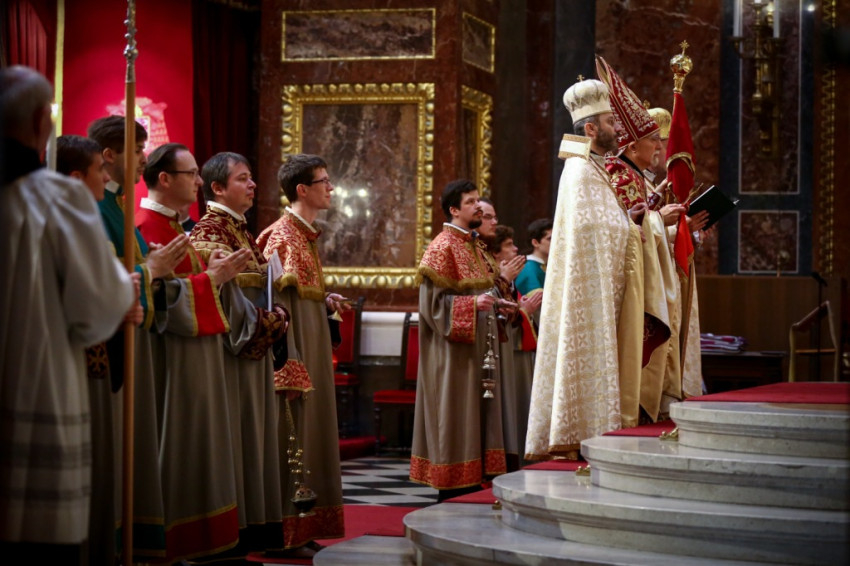 A második dolog, amelyet Szent Lukács felénk közvetít, az, hogy a Szentlélek kitárja az egyház kapuit minden nemzet előtt – folytatta Nerszész Péter. – „Így vált lehetővé, hogy bármely népből aki csak hallotta az apostolok beszédét és hitt, az Egyház tagjává vált. Így született meg a Szent Egyház: előbb Júdeában, majd a Közel-Keleten, majd Örményországban, amely az első néppé vált, amely a kereszténységet államvallássá tette. És azután Magyarországon és más országokban, amelyek nagyszámú szentet adtak, sok-sok ezer hívőt, valamint vértanúkat és hitvallókat a századok folyamán egészen a mai napig.”