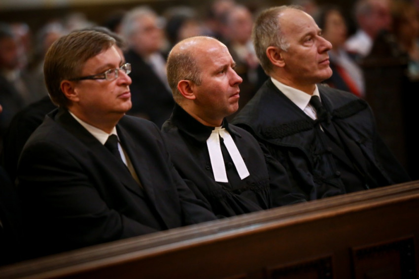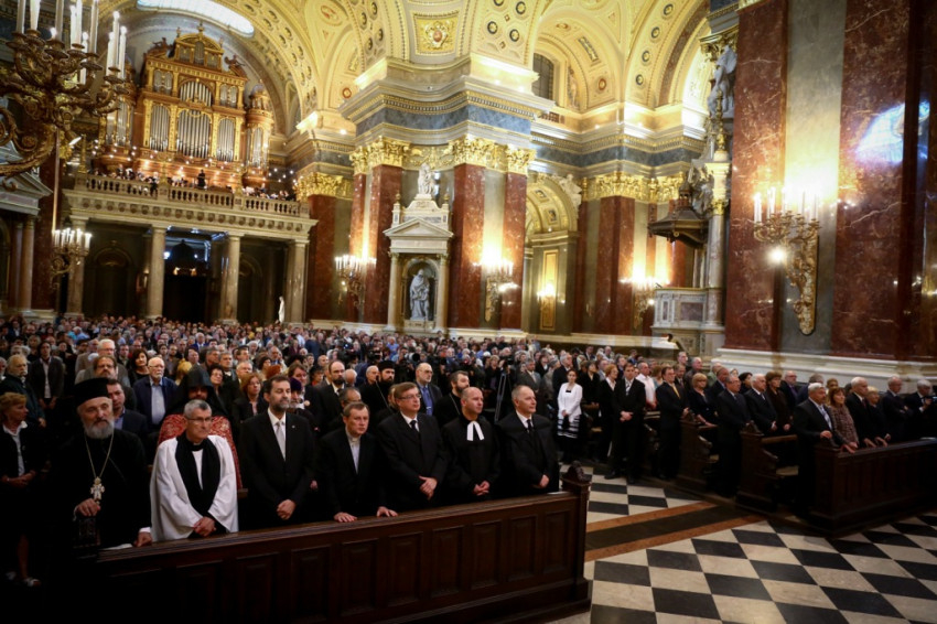 A Szent István-bazilikában bemutatott liturgián Erdő Péter bíboros mellett részt vettek a Magyar Katolikus Püspöki Konferencia jelen lévő tagjai, és az Esztergom-Budapesti Főegyházmegye papságának képviselői. Az ünnepi liturgián jelen volt Bogárdi Szabó István püspök, a Magyarországi Református Egyház zsinatának lelkészi elnöke, valamint a meghívott testvéregyházak vezetői, Harrach Péter a KDNP frakcióvezetője, Bagdy Gábor főpolgármester-helyettes és a diplomáciai testület tagjai.