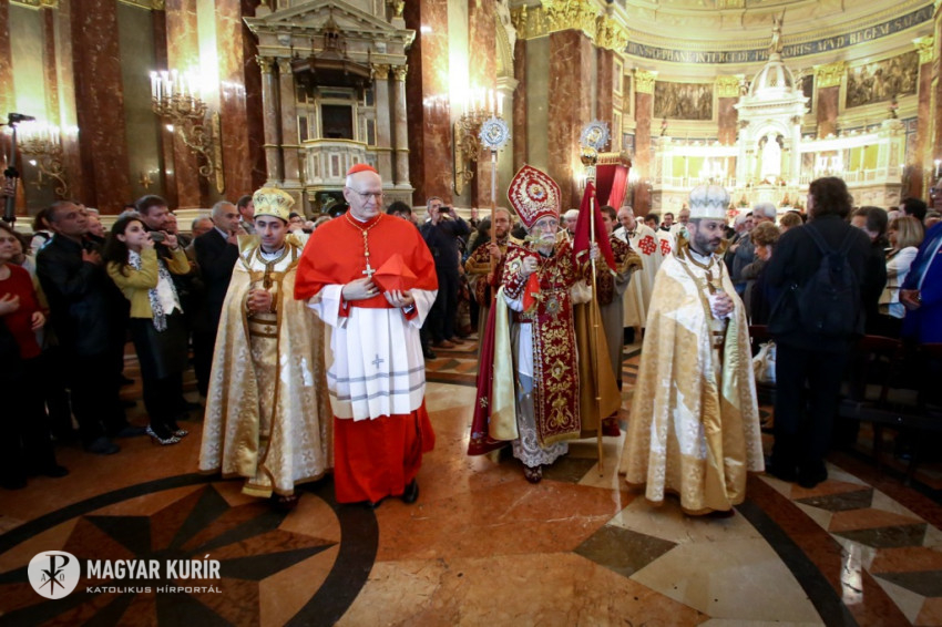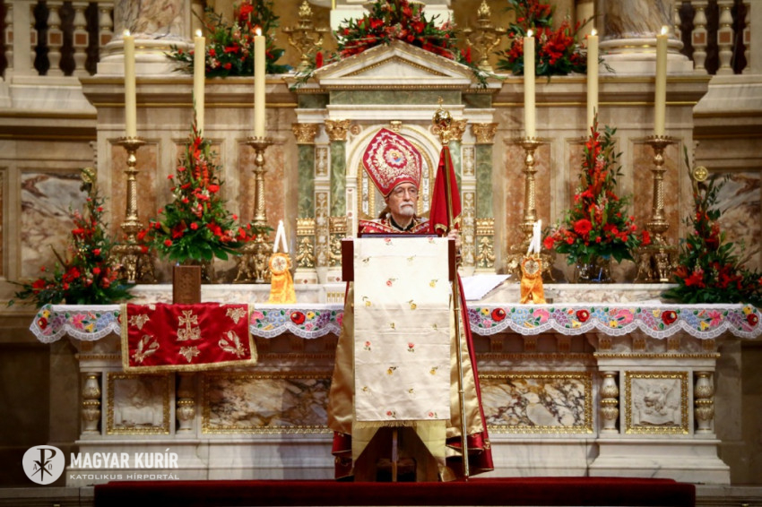 „Nagy öröm és megtiszteltetés számunkra, hogy pünkösd vasárnapjának előestéjén XIX. Nerszész Bedrosz örmény katolikus pátriárka itt, a Szent István-bazilikában mutatja be a Szent Áldozatot. Különös szeretettel és szolidaritással köszöntjük őt és kíséretét, kifejezzük teljes együttérzésünket és szeretetünket a keresztény örmény nép és a Közel-Kelet összes keresztényei iránt, akik a történelem során számos alkalommal és napjainkban is életük árán is tanúságot tesznek hitükről és hűségükről. Adja meg a Szentlélek Úristen, aki a szeretet, öröm és békesség ajándékozója, hogy népeink békében és testvéri szeretetben építhessék jövőjüket!”