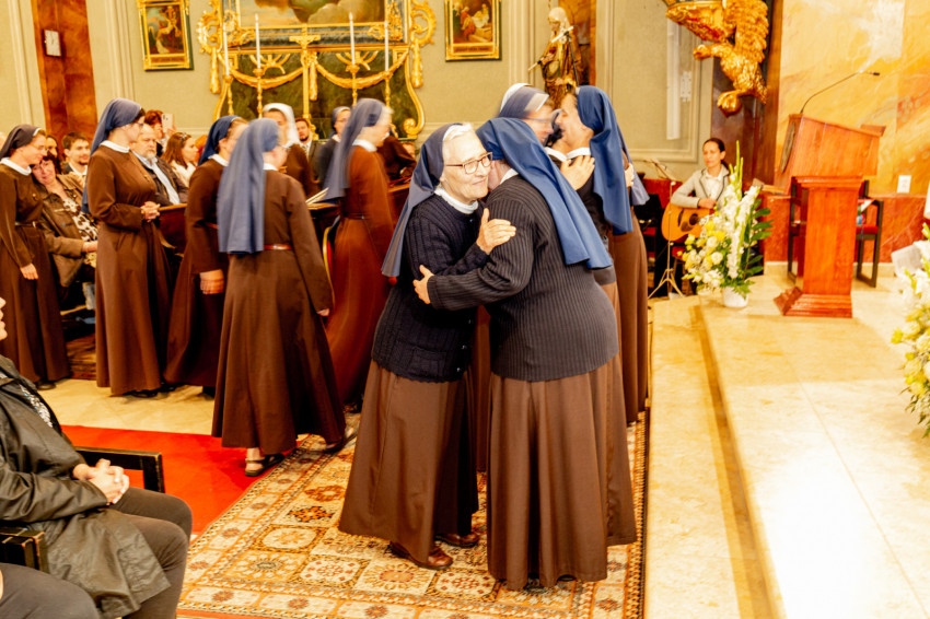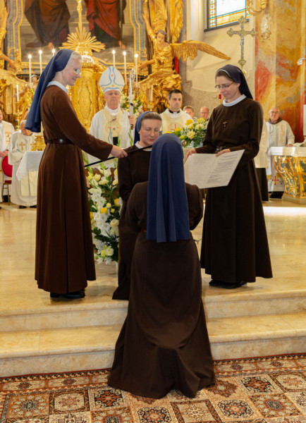 A nővérek az oltár felé fordulva leborulva fejezték ki teljes önátadásukat. Az örökfogadalmat tevő új rendtagok ezután felolvasták a közösség előtt fogadalomtételük saját kezűleg megírt szövegét, majd békecsókkal, a közösségbe való teljes befogadással zárult a szertartás ezen része.