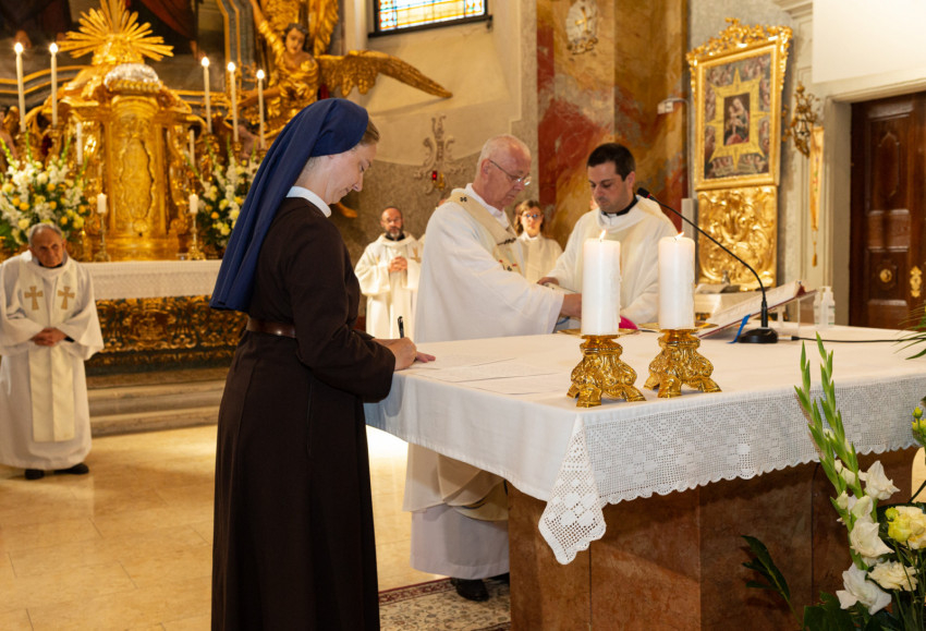 Jézus ma is hív barátokat, erre ti vagytok a példa – fordult az örökfogadalmat tevő nővérekhez az érsek. Nem szabad, hogy a világ befolyásolja Jézushoz fűződő kapcsolatunkat. Nektek is megvan a saját történetetek, ápoljátok ezeket az élményeket, és ha kísértések érnek benneteket, legyen a meghívásotok története erőforrás. Rövidesen arról nyilatkoztok, hogy ehhez a barátsághoz életetek végéig hűségesek akartok maradni, mi pedig imádkozunk azért, hogy ez így legyen.