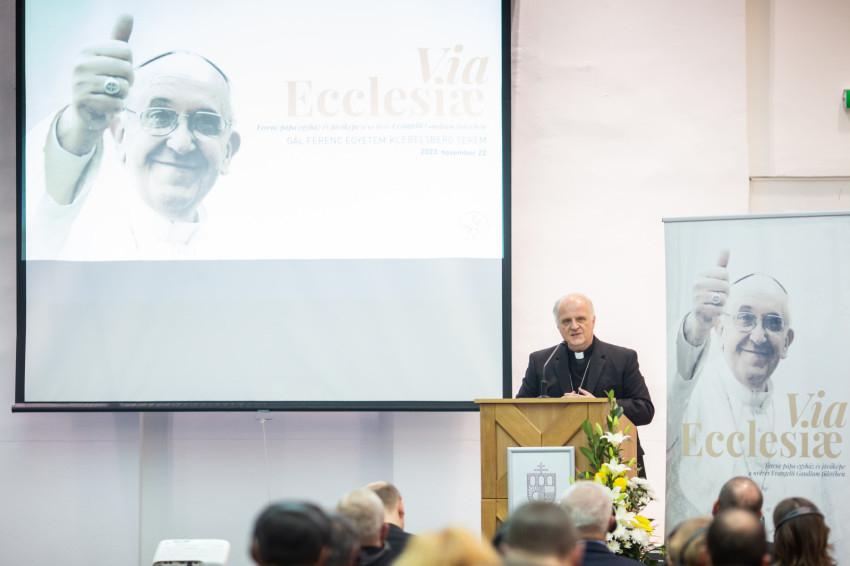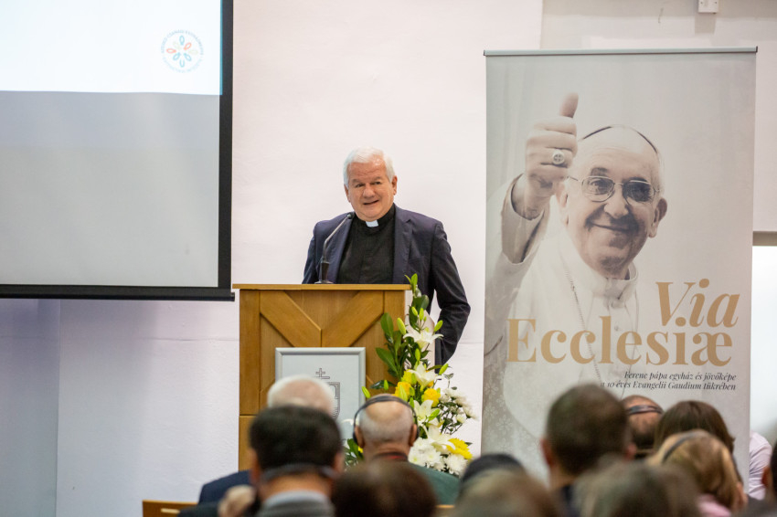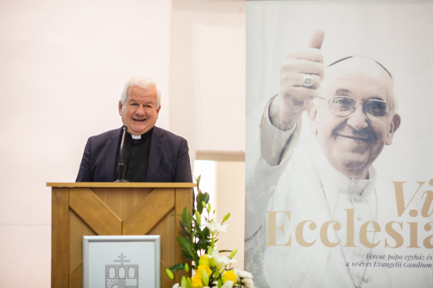 A nuncius Egy pápaság az Evangelii Gaudium alatt címmel mutatta be, hogyan hatotta át az elmúlt tíz évet Ferenc pápa „evangelizáció iránti szenvedélye” és az Egyház missziósabbá tételéért hozott reformok sora. Továbbgondolásra szánt kérdésekkel zárta előadását: Irgalmasságot gyakorló közösség vagyunk? Hogyan fejezzük ki ezt? Szolidárisak vagyunk-e? Hol van a konkoly a közösségi életünkben? Befogadók vagyunk-e? Vallásfogyasztók vagy aktív tanítványok vagyunk? Mi az a három bátor és kreatív lépés, amelyet mint evangelizáló közösség tennénk?