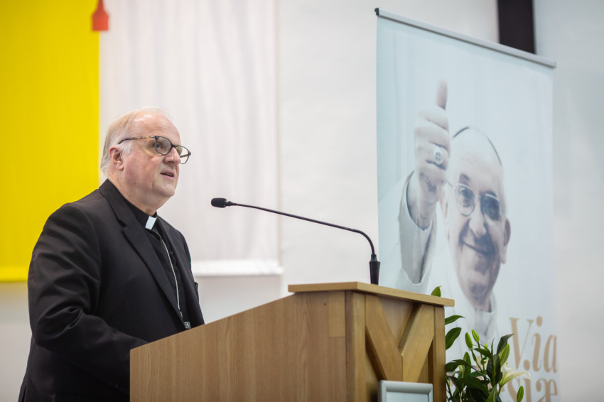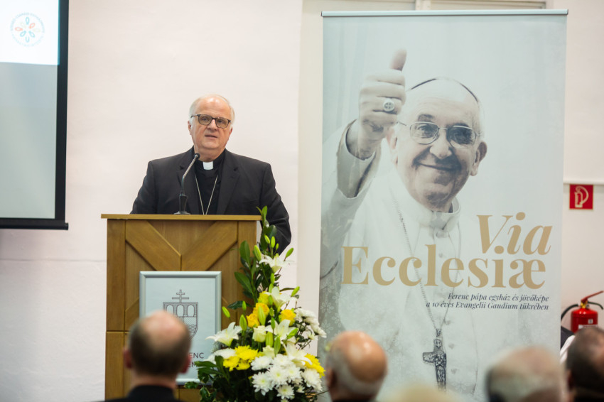 Kontextusba helyezte a dokumentumot, felmutatva annak kapcsolatát a korábbi apostoli buzdításokkal és a Szentatya áprilisi magyarországi apostoli útján elmondott beszédeivel. Röviden ismertette az Evangelii gaudium témáit, kiemelt figyelmet szentelve a következő négy alappillérnek: az idő a tér felett áll; az egység legyőzi a konfliktust; a valóság fontosabb az eszménél; az egész több mint a rész.