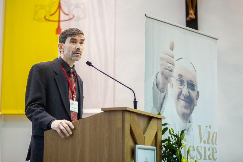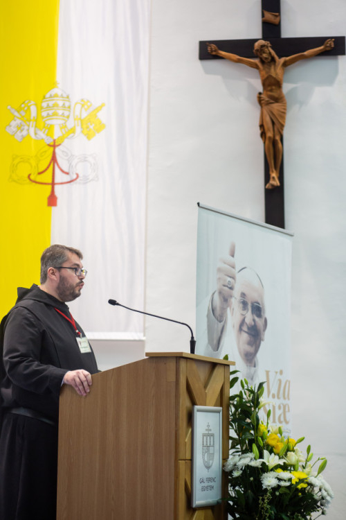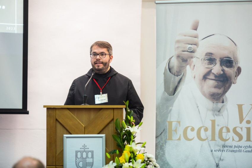 Az előadó a Ferenc pápa által képviselt utat mutatta be, és arról beszélt, hogy a pápa egyéni és közösségi megtérésre hív. Egyénként annak a felismerésére szólít, hogy a keresztény ember létének alapvető értelme a hit továbbadása, vagyis az, hogy Isten jelenlététől átalakított életem minden mozzanatával hozzájáruljak ahhoz, hogy másokhoz is elérjen Isten gyógyító közelsége, meghívó szava. Ez a találkozás öröméből fakadhat. Egyházként is erre a misszióra vagyunk hivatva: a missziós Egyház lényege, hogy az evangélium örömét továbbadja, és testvéri közösséget alkosson, ahol a keresztségből fakadóan mindenkit egyenlő méltóság illet meg, ahol Isten szeretetének megtapasztalása egymás felé lendíti a tagokat, ahol a másikra mint ajándékra tekintünk, aki belőlem is a legjobbat hozhatja felszínre, s