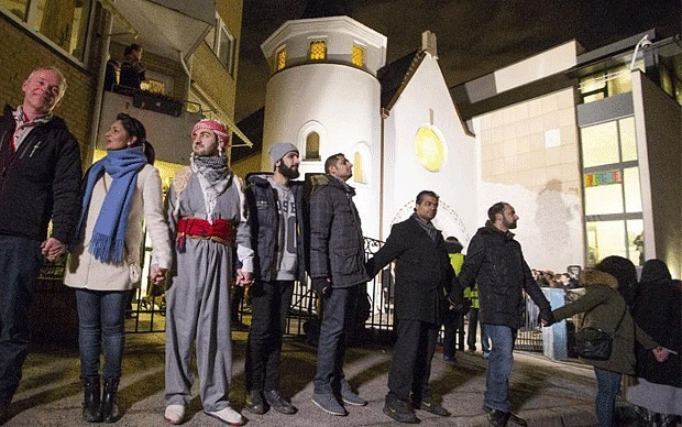 „Az emberiség egy, és azért vagyunk itt, hogy erről tanúságot tegyünk” – fogalmazott a demonstráció egyik szervezője, Zeeshan Abdullah az összegyűlt muzulmán bevándorlóknak és norvég polgároknak, akik megtöltötték Oslo egyetlen működő zsinagógájának környékét. „Sokkal többen állnak a béke, mint a háború pártján” – mondta Abdullah.
