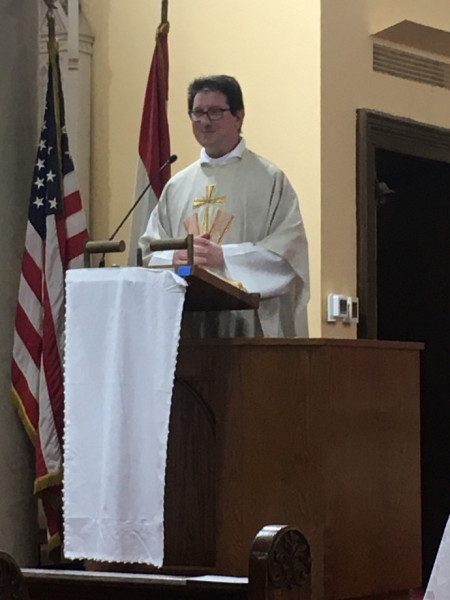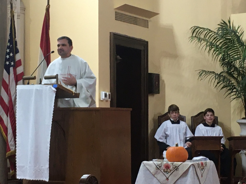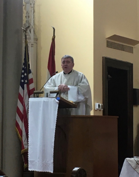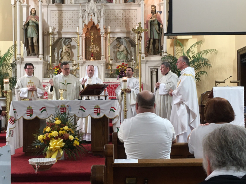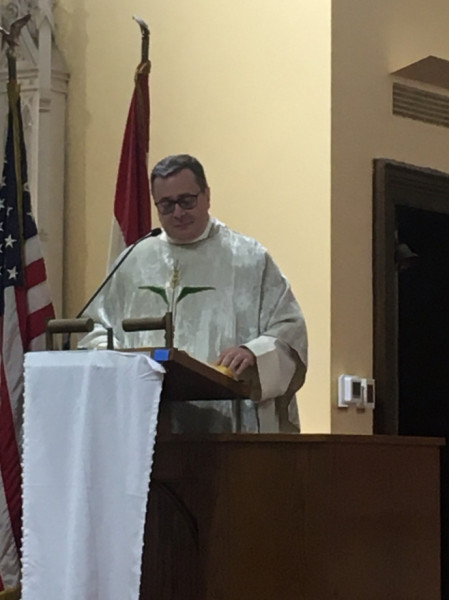A Szendrőből érkező Szűcs Zsolt atya elárulta: négy év után egy évet kihagyott a papi szemináriumban, így őt egy évvel később szentelték pappá, ezért ő még csak „ezüstdiakónus”. Az aznapi olvasmányhoz kapcsolódóan (a Mózes mellett ülők tartják a kezét, hogy ő a lényegre, az imára tudjon koncentrálni) kifejtette: a papok nagyon hálásak a segítőkért, s ennek jeleit látja ebben a közösségben is, hiszen Laci atyának nagyon sok segítője van, akik sok feladatot levesznek a válláról. „A papoknak is nagy szüksége van a hívők hitére, mert az minket is megerősít. Nagyon örülök, hogy messze az anyaországtól így őrzik hitüket és ápolják hagyományaikat; ez megerősítést jelent számunkra is.”