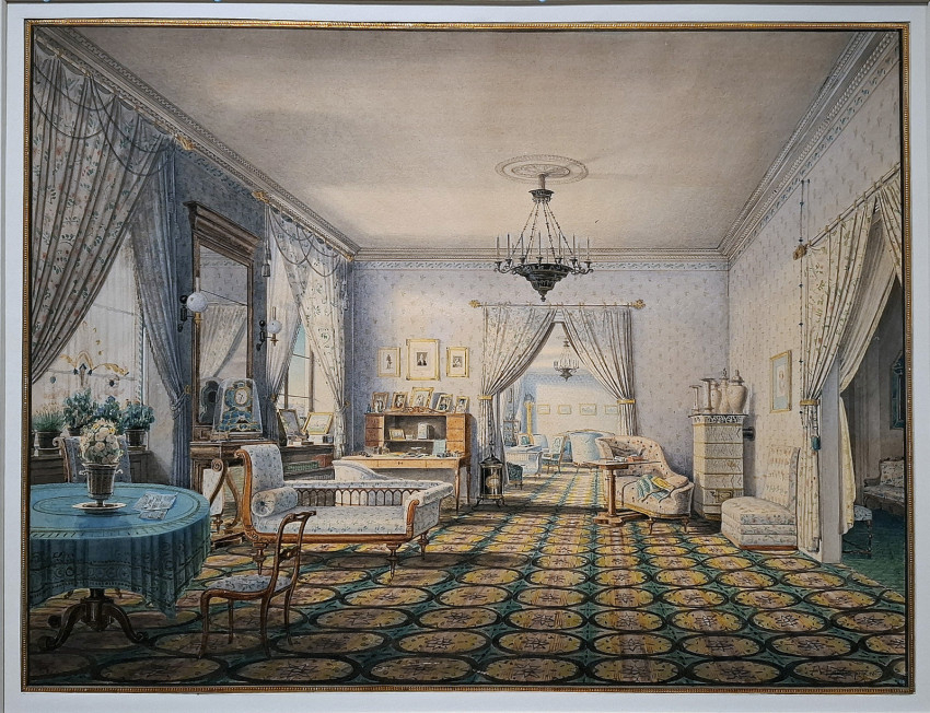 A Szépművészeti Múzeumban kiállított képeket nézegetve – a portrék sorozatát megszakítva – láthatunk itt szép számmal szobabelsőket, enteriőröket is. Mivel a fényképezés ebben az időben még nem létezett, vagy ha volt is, nem sokan művelték, így különösen fontosak ezek az otthonok belső tereit megmutató képek.