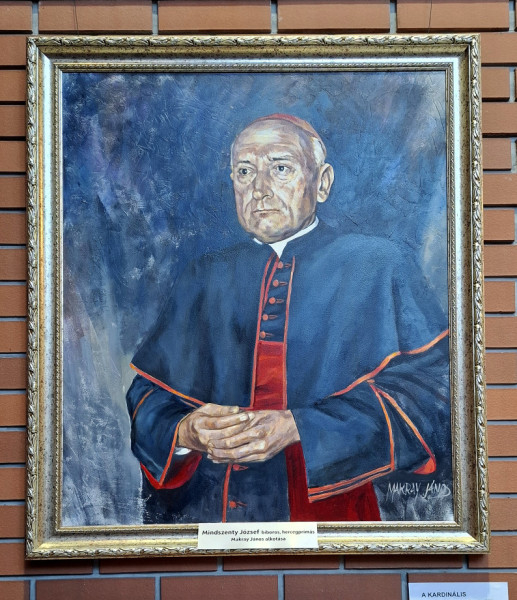 Az oltártól balra rögtön feltűnik Mindszenty József bíboros, hercegprímás arcképe A kardinális címmel. A festmény az esztergomi Keresztény Múzeum tulajdona. Nagyon jó ez a kép, a bíboros jellegzetes mozdulata, arckifejezése, a színek, a ruházat, a megvilágítás mind remekül sikerült. A kezek ábrázolása is kiváló, állapítottuk meg Gájer Lászlóval a megnyitó után. Nem könnyű olyan embert festeni vagy mintázni, akit csak fényképről ismer az alkotó, mert hiányzik neki a személyes találkozás, a közelség, a párbeszéd a modellel. Nem véletlen, hogy a századfordulón László Fülöp, a kiváló portréfestő kétszeri ülés során kilenc órát is eltöltött főúri modelljeivel. László egyik remeke az a mostanában a figyelem homlokterébe került portré is, ami a kilencvenéves XIII. Leó pápát ábrázolja. A világhírű magyar mester 1900 márciusában készítette a képet a Vatikánban, öt ülés után.