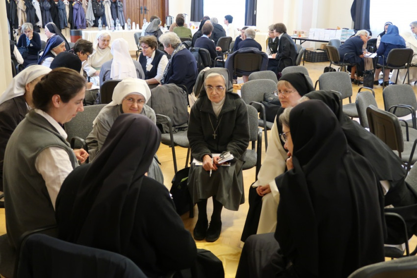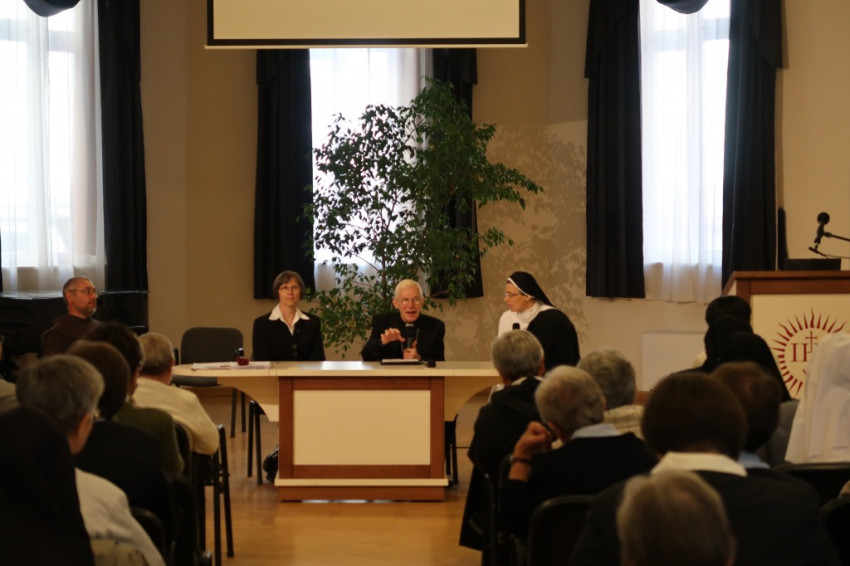 A találkozó elején Közös mélytörténetünk – „A széthulló falevelek” címmel Lobmayer Judit, a Boldogasszony Iskolanővérek tartományfőnöknője előadását hallgathatták meg a rendi elöljárók: a Zirci Ciszterci Apátságba 1950-ben különféle rendekből betelepített 490 szerzetesnővér két hónapnyi életébe nyújtott betekintést. Elmondta: Endrédy Vendel zirci apát és tíz rendtársa szervezte meg a nővérekkel a közös életet; a szerzetesnővérek egy különösen szép emlékkönyvben örökítették meg közös életüket. Ebből az ajándékképpen az atyáknak összeállított könyvből idézett és mutatott képeket az előadó.
