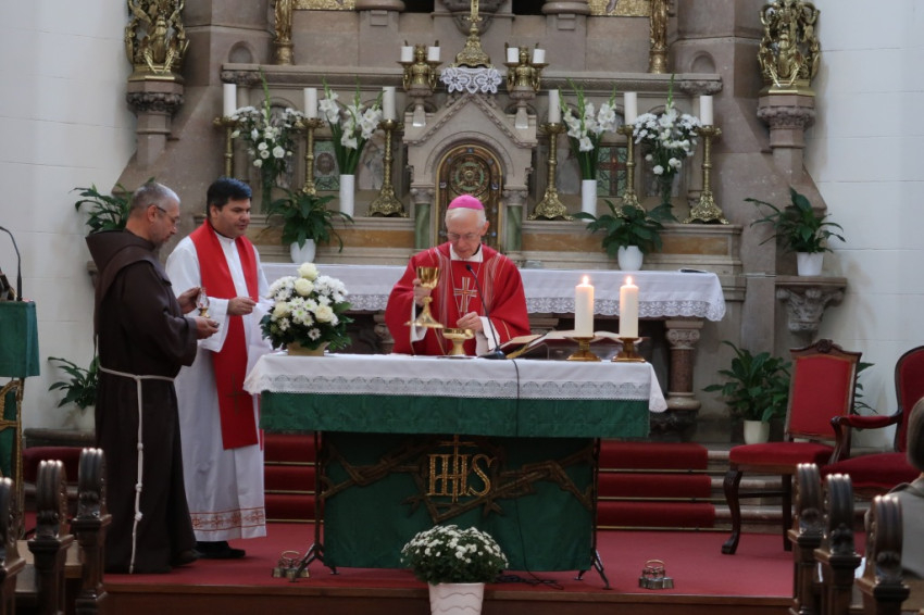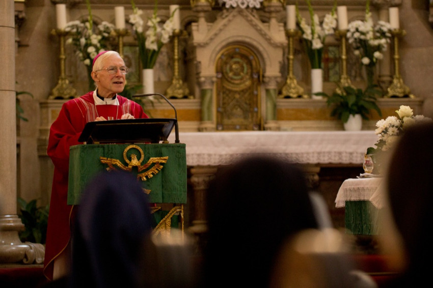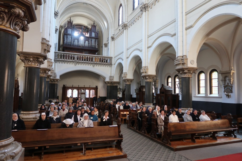A rendfőnöknők találkozóján Michael August Blume SVD apostoli nuncius mutatott be szentmisét a budapesti Jézus Szíve jezsuita templomban.
