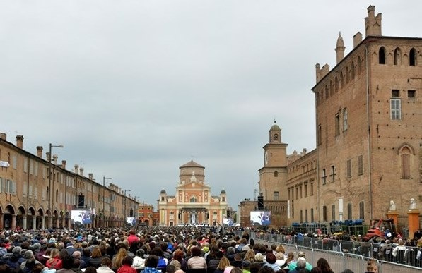 2012 májusában az észak-olaszországi Emilia-Romagna tartományát (a Pó-síkság délkeleti része) erős földrengés sújtotta, melynek következtében tizenheten életüket vesztették, háromszázan megsebesültek és tizenhétezren kényszerültek elhagyni romba dőlt otthonukat. Az öt évvel ezelőtti földrengés során Carpi püspöki székesegyháza súlyosan megsérült, de azóta sikerült helyreállítani, és idén március 25-én, Gyümölcsoltó Boldogasszony ünnepén Pietro Parolin bíboros, államtitkár újból szentmisét mutatott be az állampolgárok által a Katolikus Egyháznak felajánlott 8 ezreléknyi adó-hozzájárulások összegéből renovált katedrálisban. Már reggel hat órakor hatalmas tömeg várta, hogy ismét beléphessen a püspöki székesegyházba, hálát adni a város újjáépítéséért, mely az egész ország összefogásából született meg.