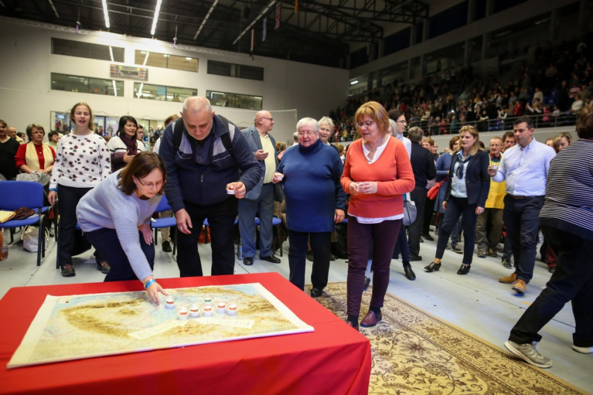 Pár perc múlva Kunszabó Zoltán állandó diakónus lép a mikrofonhoz, hogy bejelentse: a húszéves magyar jubileum alkalmából megalapították a karizmatikus közösségek szövetségét, és 44 közösség már jelezte is a csatlakozási szándékát. Tiszteletbeli elnöknek Varga László püspököt kérték fel – Kunszabó Zoltán felolvassa a levelét, amelyben vállalja a tisztséget, és köszönti a találkozó résztvevőit. Magyarországon körülbelül 130 karizmatikus közösség van, mondja a diakónus, és még jó néhány a határokon túl. A szövetséghez csatlakozók és az érdeklődők képviselői mécseseket kapnak, az oltár elé vonulnak vele, és elhelyezik őket a Kárpát-medence térképén. – Máris tűzbe borult az ország – örvendezik Kunszabó Zoltán, majd mindenkit arra kér: ölelje meg a mellette állót, és mondja neki azt: „Testvérek vagyunk, egyek vagyunk.”