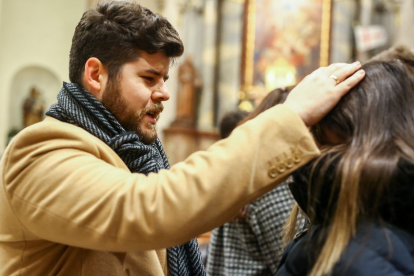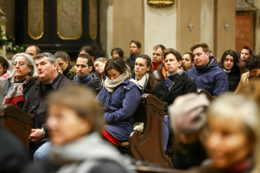 A Családok Jézusban Közösség kezdeményezte szentmisén Lendvai Zalán OFM, a ferences templom plébánosa köszöntötte a padokat megtöltő sokaságot. Köszöntőjében Szent Bálint püspökre tekintett, aki a hagyomány szerint a szerelmesek védőszentje.