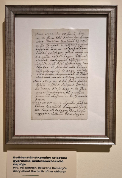 Különleges érdekesség Munk Artúr vajdasági írónak fiáról, Munk Györgyről írt babanaplója. Ez a grafikus formában szerkesztett, keretben elhelyezett lap 1919-ből való. A kiállításon látható legrégebbi naplóbejegyzés 1775-ben íródott: ebben Bethlen Pálné Kemény Krisztina a gyermekei születéséről ír, s szintén kép formában, keretben látható a tárlaton.