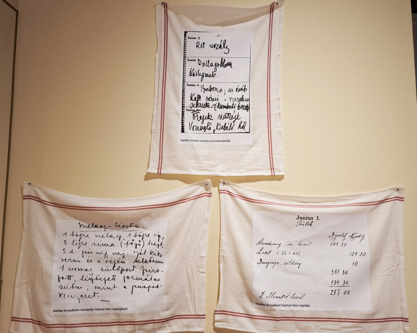 Vannak különleges naplók is, amelyek nem a megszokott formában íródnak. Hiszen nemcsak papíron örökíthetők meg a gondolatok, hanem akár más anyagra is rögzíthetők feljegyzések. Életének utolsó időszakában Csáth Géza az addig rendezetten vezetett naplófüzet helyett az orvosi rendelőkönyvére írt. A kiállításon kendőkre írott naplójegyzeteket is láthatunk, ilyen például Halász Erzsébet receptje a háztartási naplójából.
