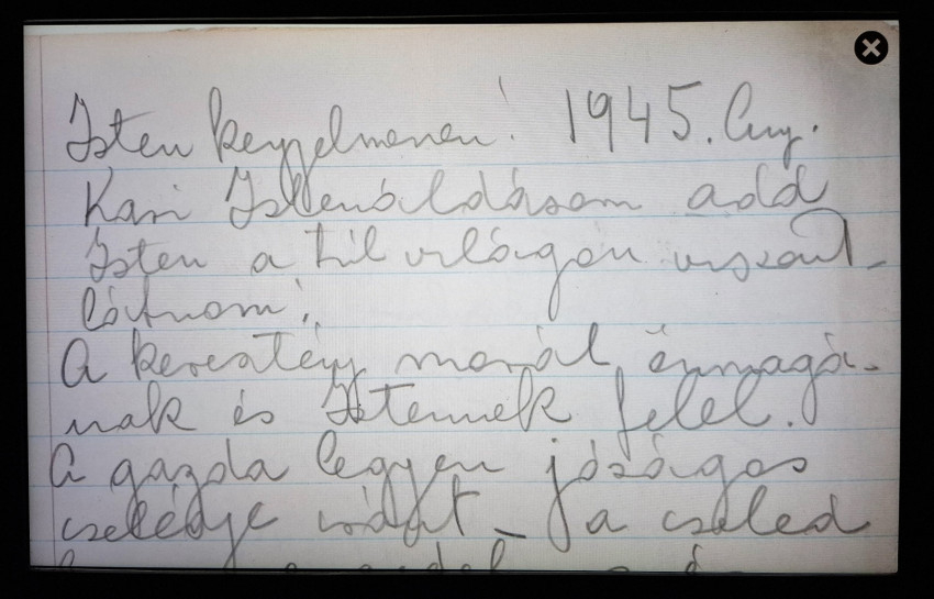 A kiállítás egy drámai részlete Lesznai Anna naplóihoz köthető. Egy videóból megtudhatjuk, hogy az írónőnő évtizedeken át vezetett naplót, több füzetet is teleírt. Az 1900-as évek első évtizedétől egészen 1945-ig írt gyakran készített naplóbejegyzéseket. Akkor hagyott fel ezzel a szokásával, amikor elsőszülött fiát, Garay Károlyt 1944-ben a németek lelőtték. Lesznai ekkor már Amerikában élt, ott értesült fia haláláról.