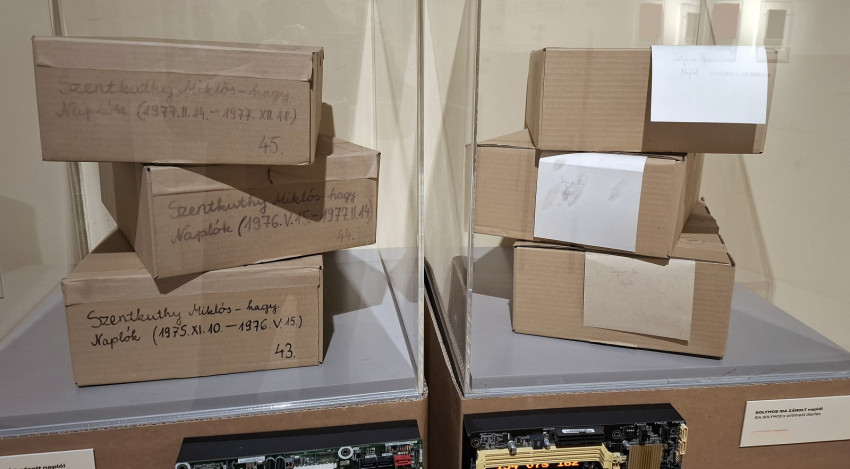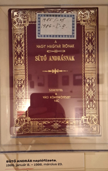 A kiállításon különféle naplófüzeteket láthatunk. Cs. Szabó László füzete például szürke színű, címlapját régies hatású keret díszíti, Fodor András naplója pedig egyszerű spirálfüzet, rajta a nevével és az évszámmal. A legszebb talán Sütő Andrásé, bordó kötéstáblával, aranykeretes díszekkel és feliratokkal. Igazán impozáns könyv, ez áll rajta: Szeretettel a váci könyvkötészet.