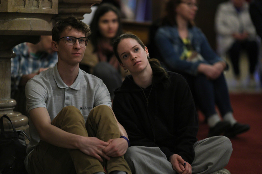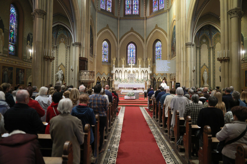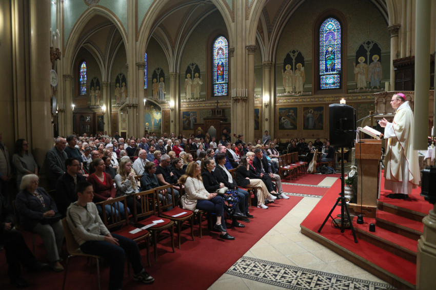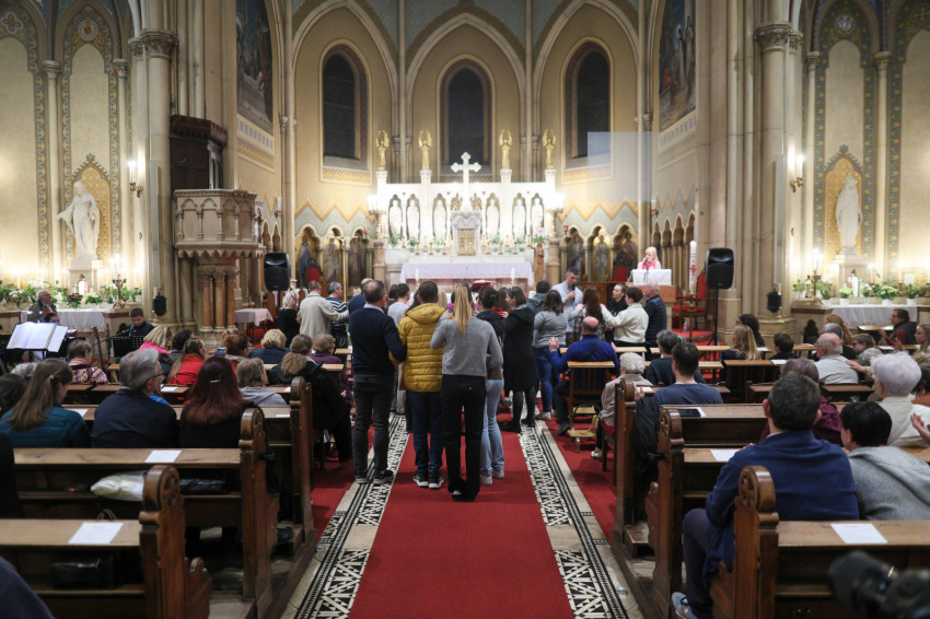 Az egész estés program szentmisével kezdődött, melyet Fábry Kornél esztergom-budapesti segédpüspök mutatott be. Az evangélium Szent Lukács könyvéből hangzott el, a tanítványok találkozása a feltámadt Jézussal az emmauszi úton (24,13–35).