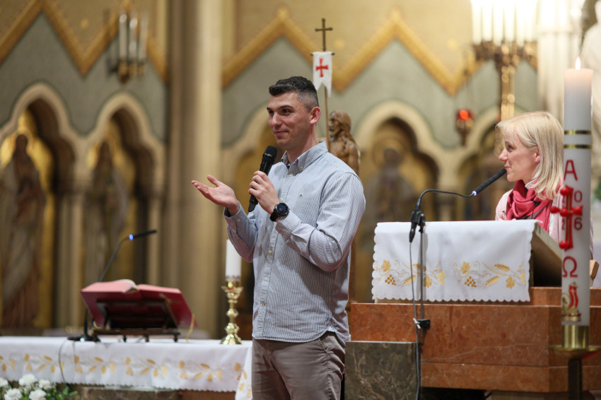 A szentmisét követően a lengyel katolikus evangelizátor, dicsőítésvezető, Marcin Zieliński tett tanúságot, beszélt arról, hogyan találkozhatunk életünkben Jézus Krisztus különleges, gyógyító kegyelmével. Szavait Schaffler Ágnes fordította magyarra.
