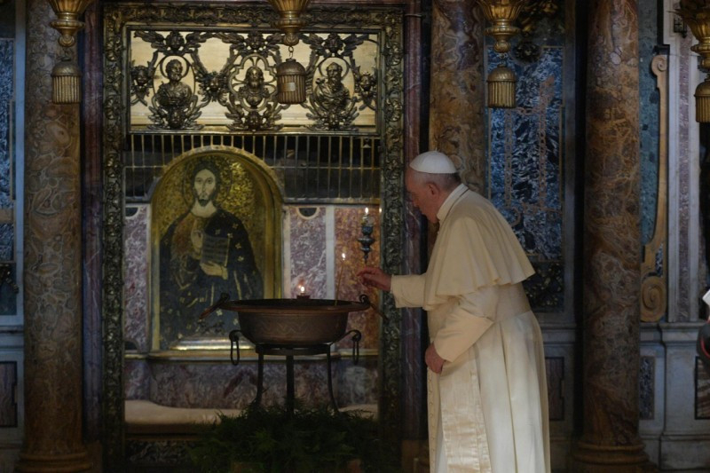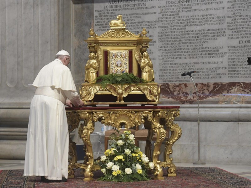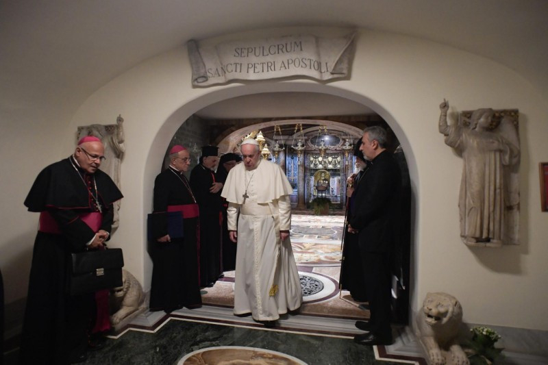 Rövid csend után a Szentatya lement Szent Péter sírjához, ahol egy gyertyát helyezett el, majd a jelen lévő tíz egyházi vezető is.