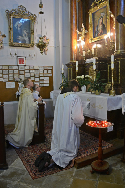A szentmise záróáldását követően, amely egyben újmisés áldás volt, a hagyományokhoz híven a papság, az asszisztencia levonult a Segítő Szűzanya-kegyoltárhoz, hogy hálát adjanak a búcsúünnep minden kegyelméért, és Mária oltalmába ajánlják az Újvárosban lakó istenkereső lelkeket, az egyházközséget és minden jó szándékú embert.