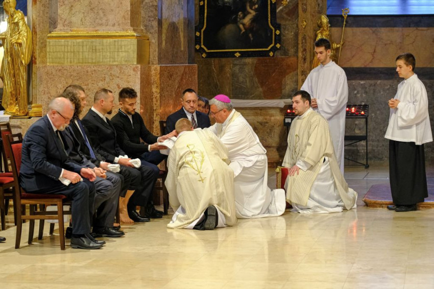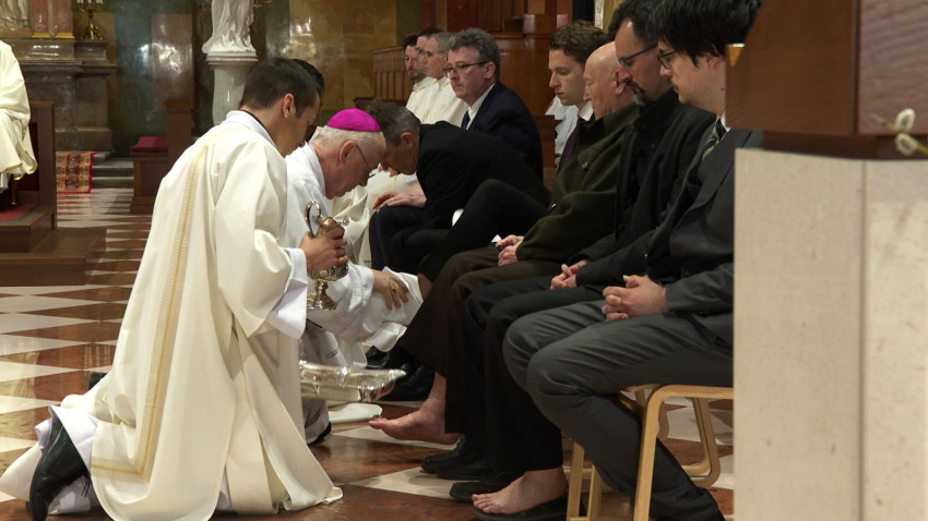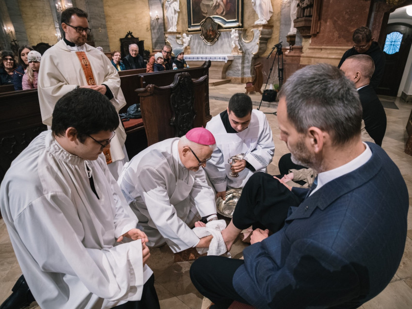 Az április 17-i szertartáson a főpásztor tizenkét hívőnek: az esztergomi Érseki Papnevelő Intézet egy elsőéves papnövendékének, valamint a plébániai hívőközösség tizenegy férfi tagjának mosta meg a lábát.