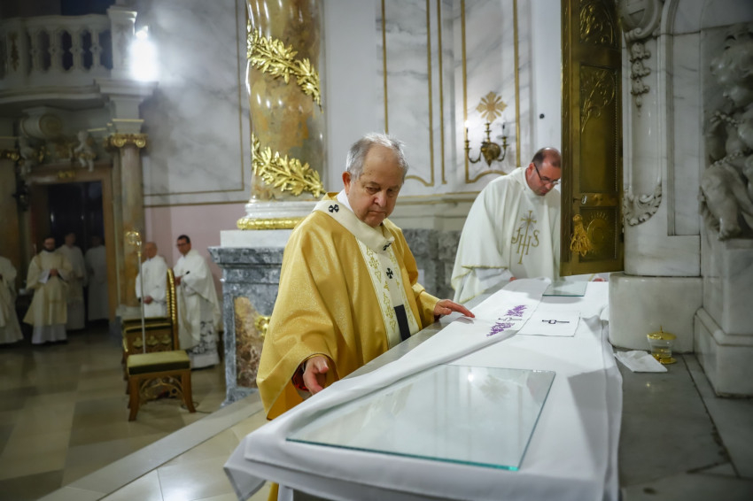 Nagycsütörtök este az utolsó vacsorára és az Eucharisztia alapítására emlékezve mutatott be szentmisét Varga László megyéspüspök a kaposvári Nagyboldogasszony-székesegyházban.