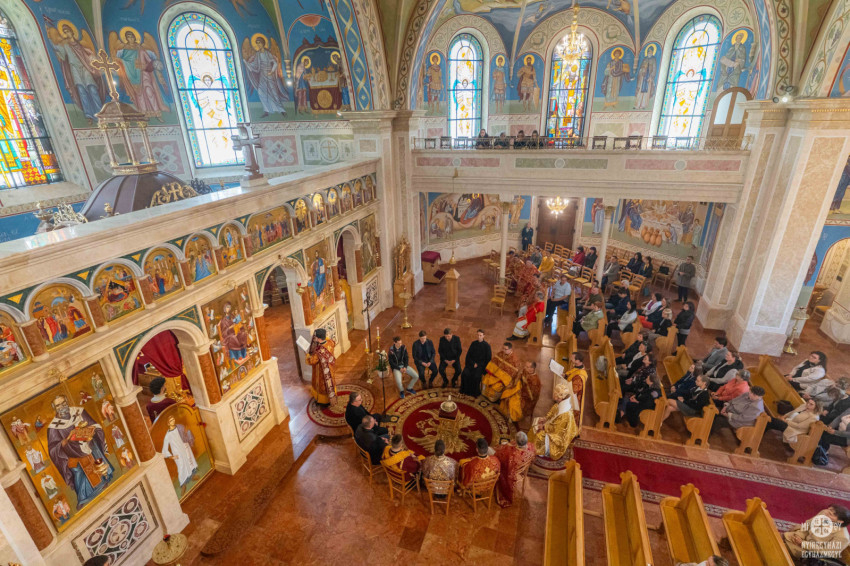 A nagycsütörtök délelőtti szertartást – a nagy alkonyati istentiszteletet Nagy Szent Bazil Liturgiájával – Orosz Atanáz püspök idén elsősorban az Abaúj-Hegyaljai Esperesi Kerület papságával együtt végezte a székesegyházban.