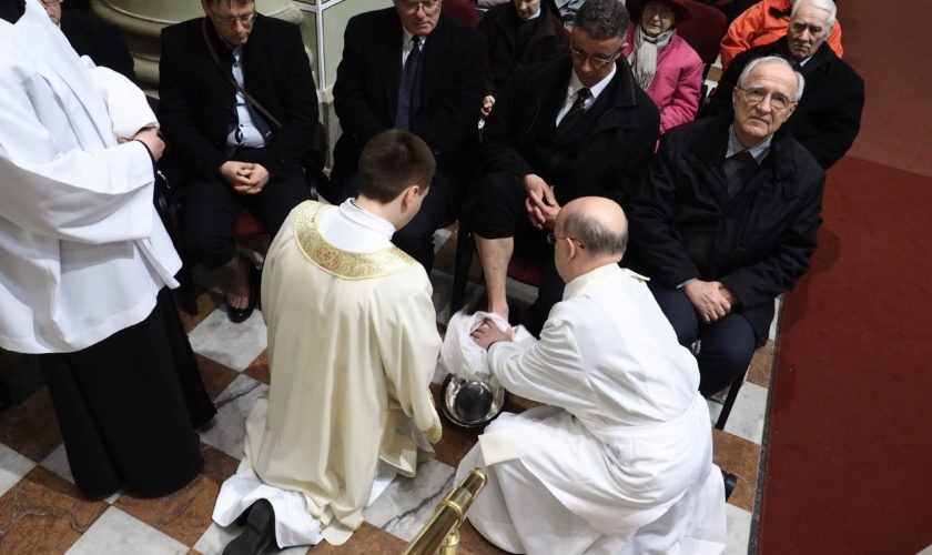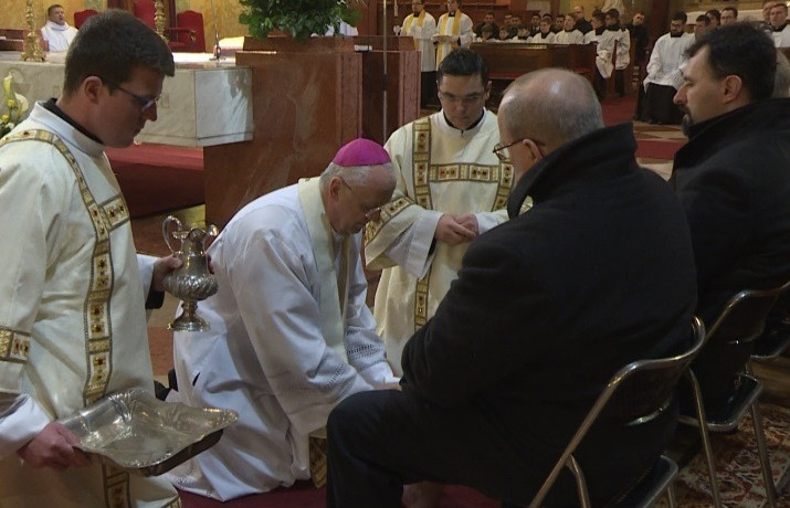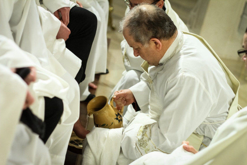 A szentbeszéd után a főpásztor az utolsó vacsora eseményeire emlékezve – Jézushoz hasonlóan – megmosta tizenkét férfi lábát.