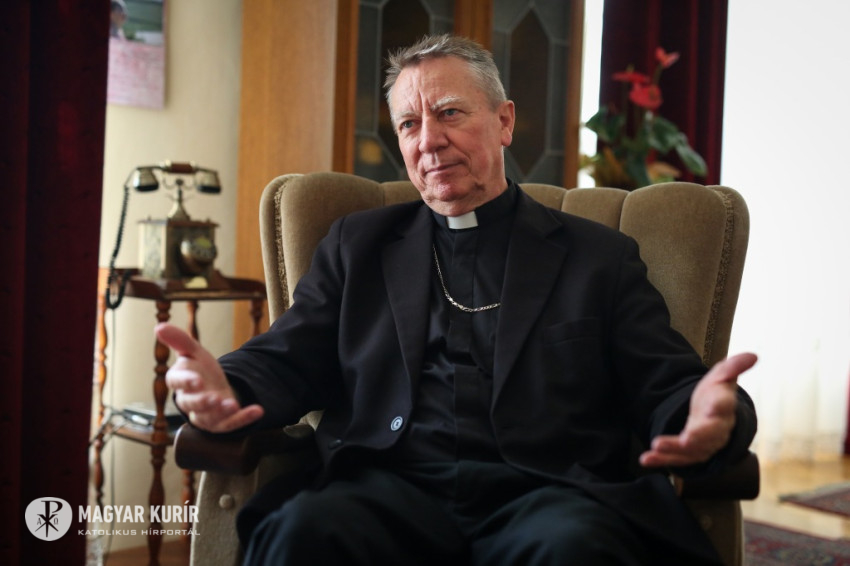– Amikor 1997-ben az esztergom-belvárosi plébániára kerültem, úgy gondoltam, hogy innen megyek majd nyugdíjba. Már az is meglepetésként ért, hogy 1999-ben az Esztergomi Hittudományi Főiskola rektorává neveztek ki. Egy filozófiaóra után jelezték nekem, hogy Karl-Josef Rauber nuncius úr szeretne beszélni velem. El sem tudtam képzelni, hogy mit akarhat tőlem. Már tőle eljövőben gondolkodni kezdtem azon, mi is legyen a püspöki jelmondatom. Így esett a választásom Pál apostolnak a korintusiakhoz írt első levelére: „Vigyázzatok, tartsatok ki állhatatosan a hitben, viselkedjetek bátran, legyetek erősek.”