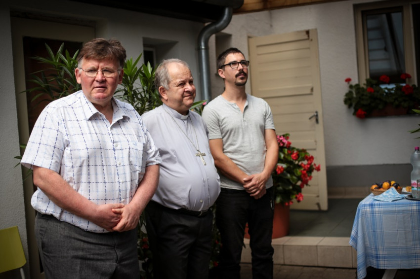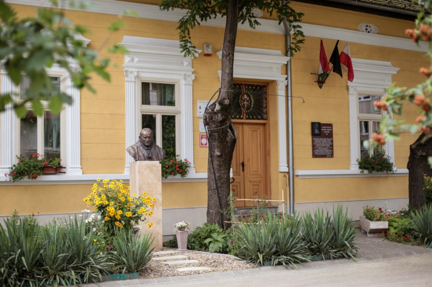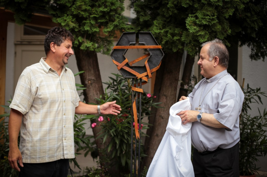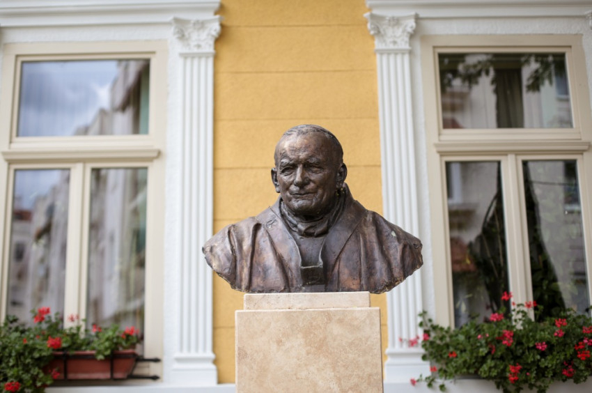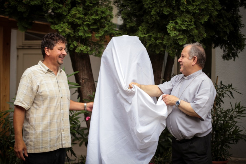Az érsek leleplezi Brzózka Marek szobrászművész, magyar anya és lengyel apa gyermeke TOTUS TUUS feliratú, a ház piciny kertjében felállított fémszobrát, majd meleg szavakkal emlékezik II. János Pálra, akire, mivel édesapjával egyidős volt, mindig fiúi érzésekkel tekintett, és már pápává választását is nagyon óhajtotta, sőt meg is jövendölte.