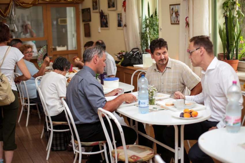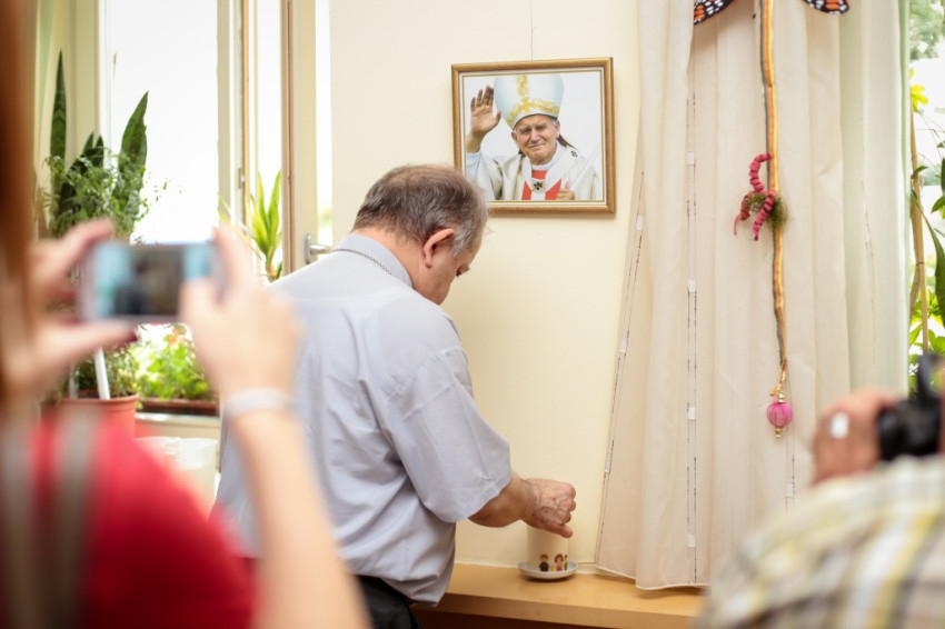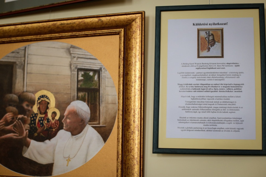 Az alapjában véve szociális, de az egyházhoz kötődő és az egykori pápa szellemiségét példának tekintő intézmény naponta (hétvégén is!) hetven-százhúsz rászorulót fogad, lát el napi betevővel: tízóraival, ebéddel és elvihető élelmiszerekkel, tudjuk meg Molnár Zoltán intézményvezetőtől. Alapítói között ott volt Bábel Balázs kalocsa-kecskeméti érsek is, aki mindmáig rendszeresen támogatja a központot. Az ünnepségre sem érkezik üres kézzel: tésztát és konzervet hoz.