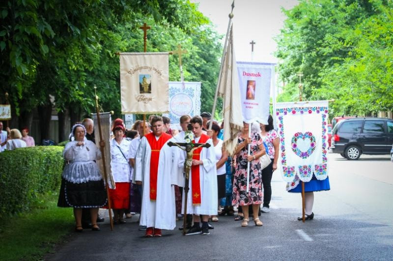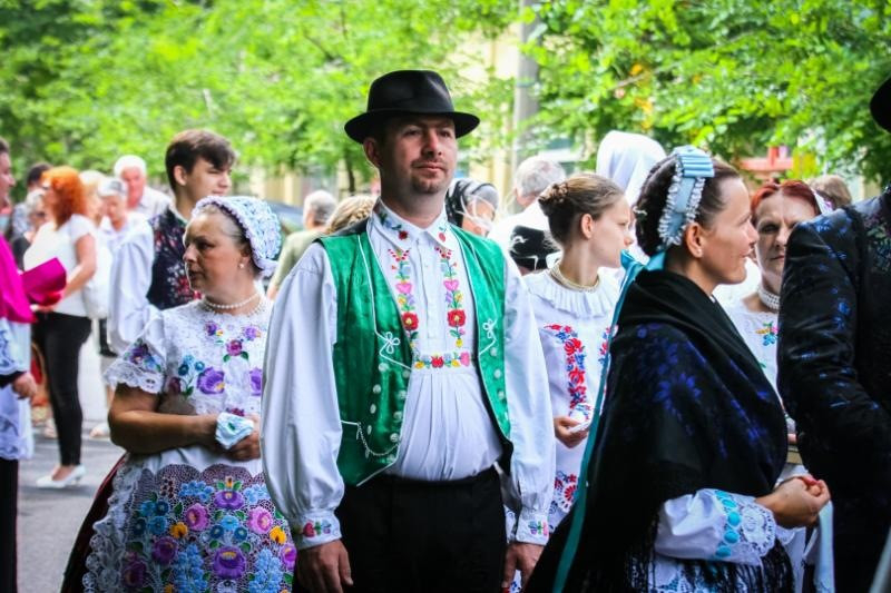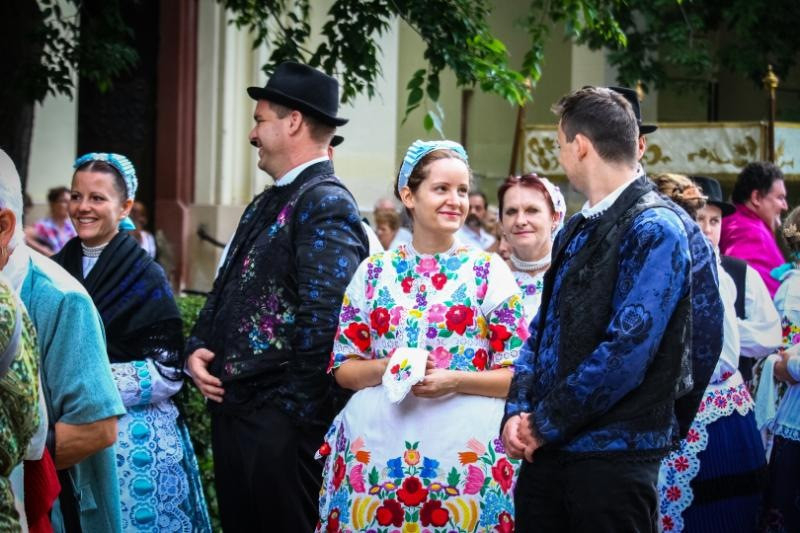 A harangszóval kísért, énekelve vonuló hívők sokaságában ott voltak a hagyományos viseletbe öltözött kalocsai és Kalocsa környéki hívek is. A dusnoki és bátyai, valamint a kalocsa-eperföldi testvérek gyalogos zarándoklattal érkeztek a búcsú főmiséjére.