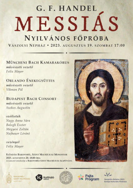 Idén a szokásos ünnepi liturgia és az új kenyér megáldása mellett a bencések különleges élménnyel ajándékozzák meg mindazokat, akik augusztus 20-án a bakonybéli programsorozatot választják: világhírű zenészek tolmácsolásában hangzik fel teljes egészében (az előadás hossza így két és fél óra) a monostor templomában a zenetörténet legismertebb, s talán leggrandiózusabb oratóriuma, Händel Messiása, amely a titokkal, a fölkenttel, a kezdetekkel való találkozás nagyszerű lehetőségét kínálja bakonybélieknek és az oda látogatóknak egyaránt.