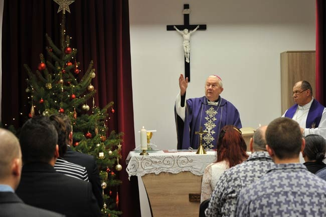 A kápolnát tizennégy festmény díszíti, mely Jézus keresztútját mutatja be: egy elítélt vállalta, hogy a jóvátételi tevékenység során elkészíti a képeket. Feszület, hófehér falak és egy új oltár: ez a kép fogadta az ünnepség résztvevőit, s egy feldíszített karácsonyfát is felállítottak. A misére érkező fogvatartottak négyesével foglaltak helyet; aki kért, misefüzetet kapott.