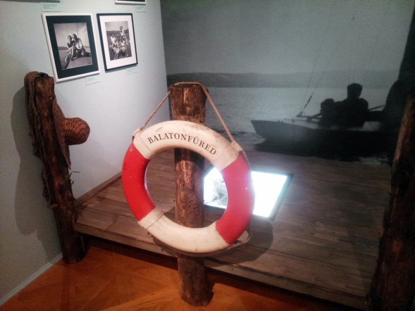 A kiállítás rendezői építettek egy balatoni stéget fából, a háttérben hatalmas poszterrel, az előtérben vaskos oszlopokkal, s még mentőövet is láthatunk a tárlaton Balatonfüred felirattal és a már említett fecskével. Körben mindenütt fényképek a Balaton világából. A korabeli értelmiség színe-java látható a több száz, nagyrészt amatőr felvételen: írók, költők és a baráti körükhöz tartozó más hírességek.