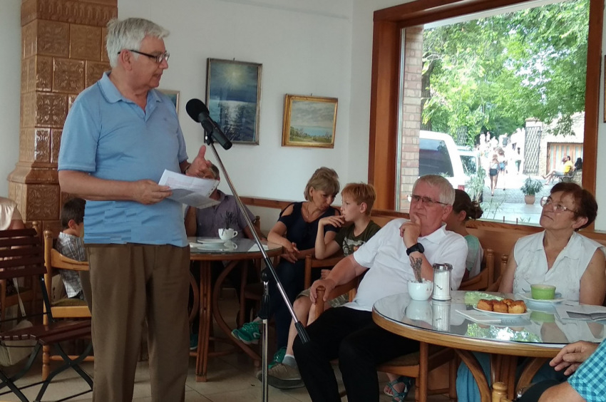„Csakhogy újra látlak, égnek ezüst tükre, / égnek ezüst tükre, szép csöndes Balaton! / Arcát a hold benned elmélázva nézi, / s csillagos fátyolát átvonja Tihanyon…” – idéződtek fel Gárdonyi Géza versének örökszép sorai azon a kiállításon, amelyen Csizmazia András, tihanyi lokálpatrióta értékes képzőművészeti gyűjteményéből láthatnak egy reprezentatív válogatást a látogatók a tihanyi Apátsági Rege Cukrászdában.