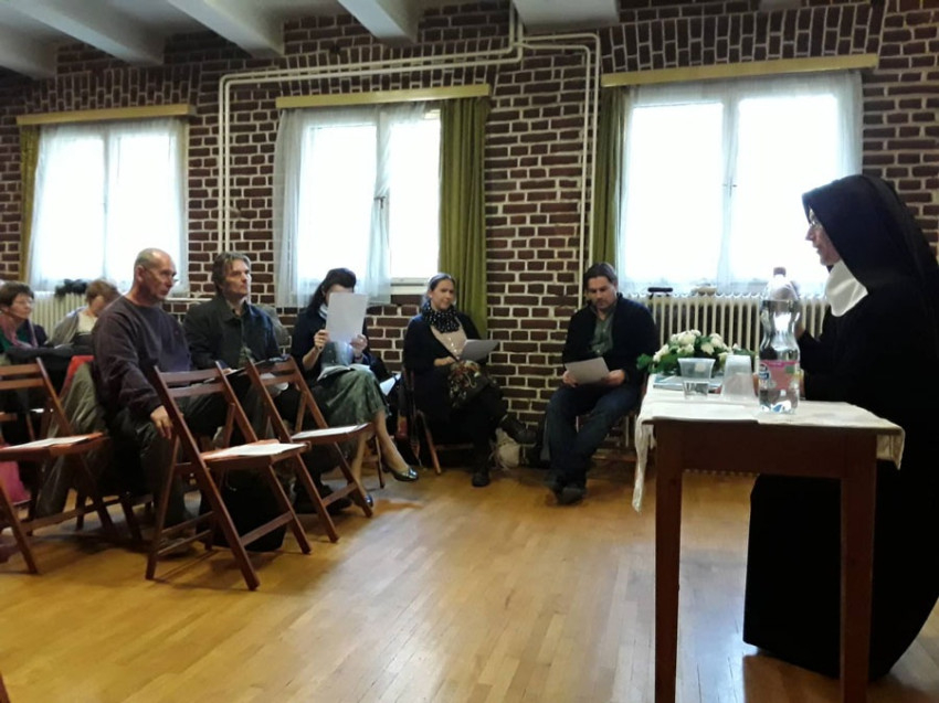 Az előadás után Bingeni Szent Hildegárd látomásainak közös olvasása következett a szerzetesnővér vezetésével. A szakértő kiemelte, e szövegek nem extatikus elragadtatásban keletkeztek, hanem éber állapotban. Hildegardot ezért is nevezhetjük egyfajta „objektív misztikusnak”, aki az üdvtörténet teológusaként hagyta ránk írásait.