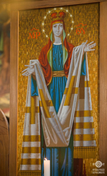 Az ünnepi ikonon a Szűzanya kezében tart könnyedén egy leplet, ezzel oltalmazza a rábízott, hozzá forduló népet. Mintha csak ezt mondaná: „helyezzétek ide a bánatos szíveiteket, s mint a jó édesanya vigasztalva mondaná, én segítek felemelni minden bánatot és nehézséget ahhoz, akinek van hatalma segíteni” – magyarázta a főpásztor.